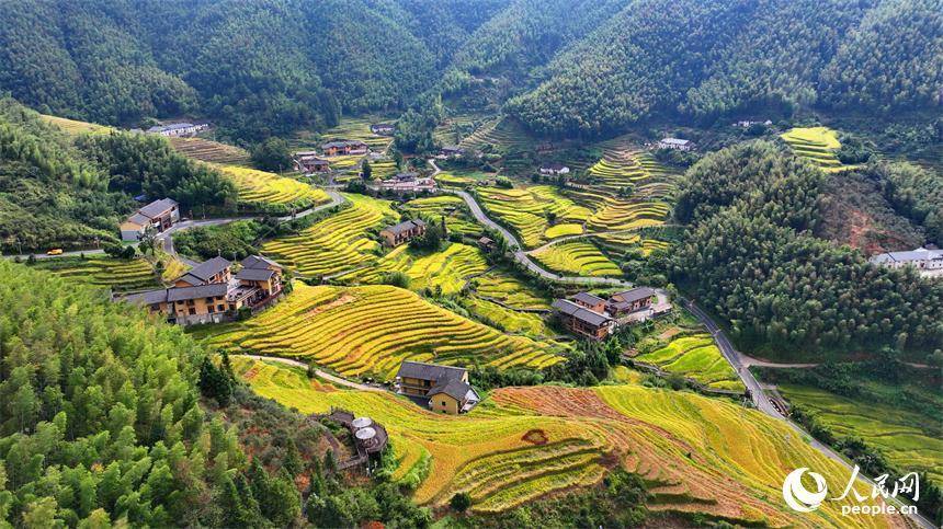 赣州市崇义县上堡乡,层层叠叠的梯田沿山体绵亘蜿蜒,与错落分布的农家房屋、旅游民宿相映成画。人民网 朱海鹏摄人民网崇义11月5日电 (朱海鹏)近日,江西省赣州市崇义县上堡乡,层层叠叠的梯田沿山体绵亘蜿蜒,与错落分布的农家房屋、旅游民宿相映成画。