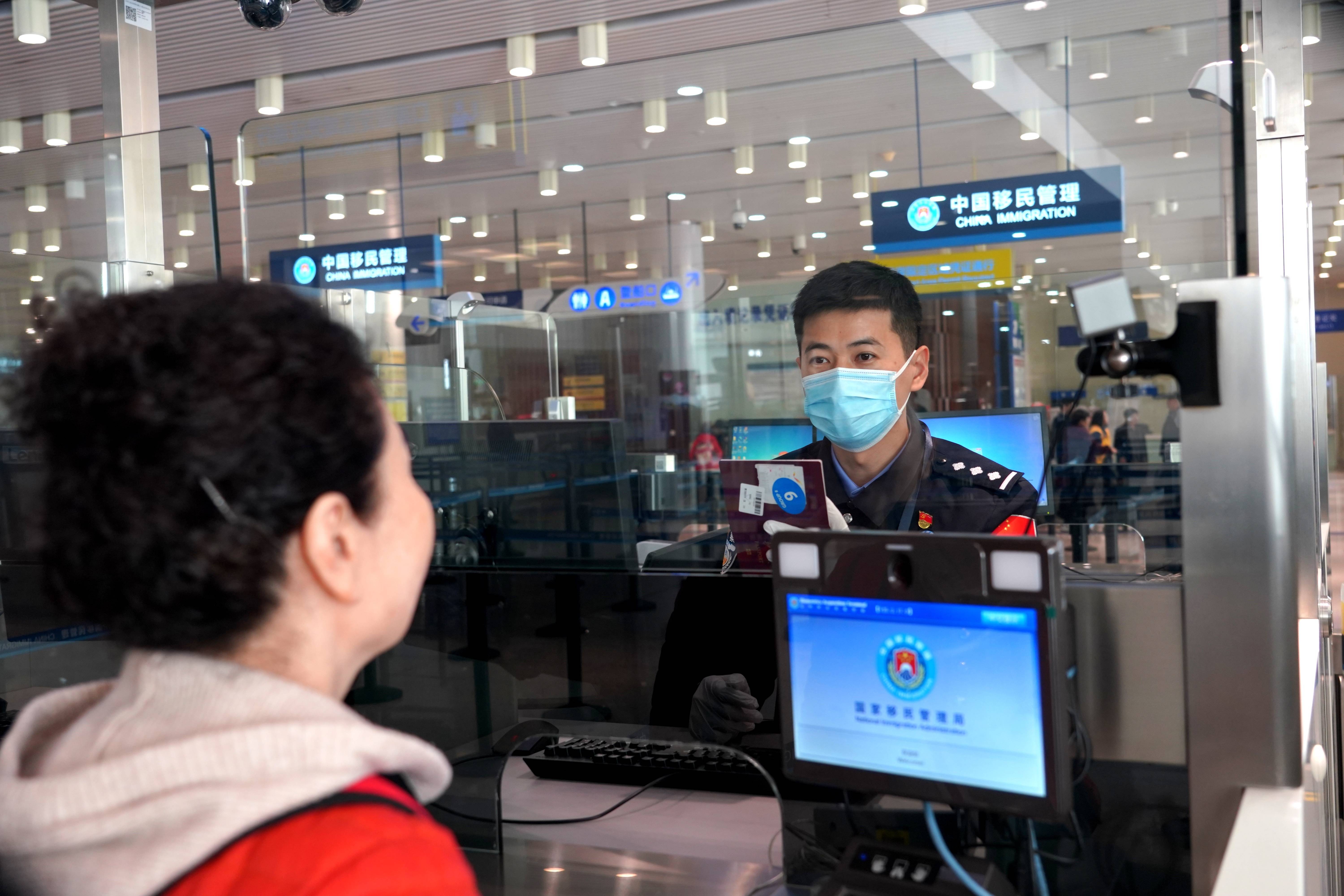 旅客等待通过口岸边检检查。新华社发针对出入境客流高峰,东疆边检站提前与联检单位、邮轮公司、码头公司等部门对接,分析旅客特点,最大限度缩短旅客集中候检时间,充分提高旅客通关效率,并开设“特别通道”,为老弱病残孕等特殊群体提供快速通关服务。