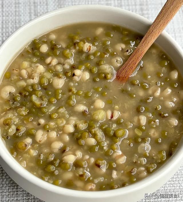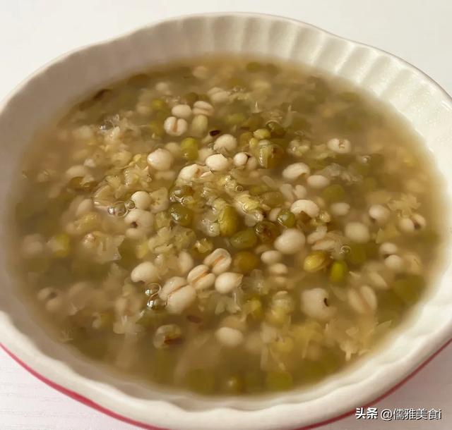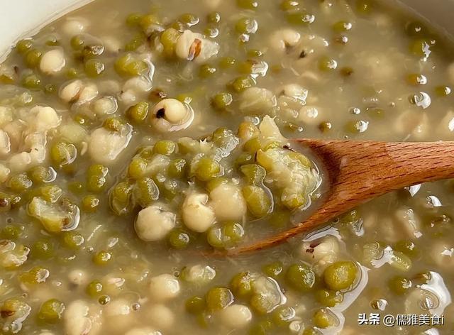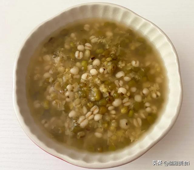 3. 大火烧开后,转小火慢煮20分钟,煮到绿豆全部开花、薏米变得软糯;