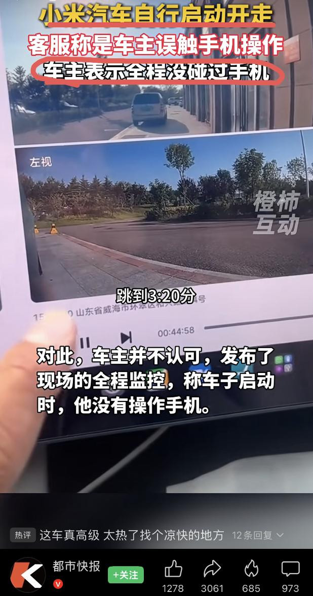 想起假期第二天看到的另一条和小米有关的新闻,车主在屋内做事,车辆自己在屋外开走了。媒体采访后,品牌方客服称是车主误触手机导致。